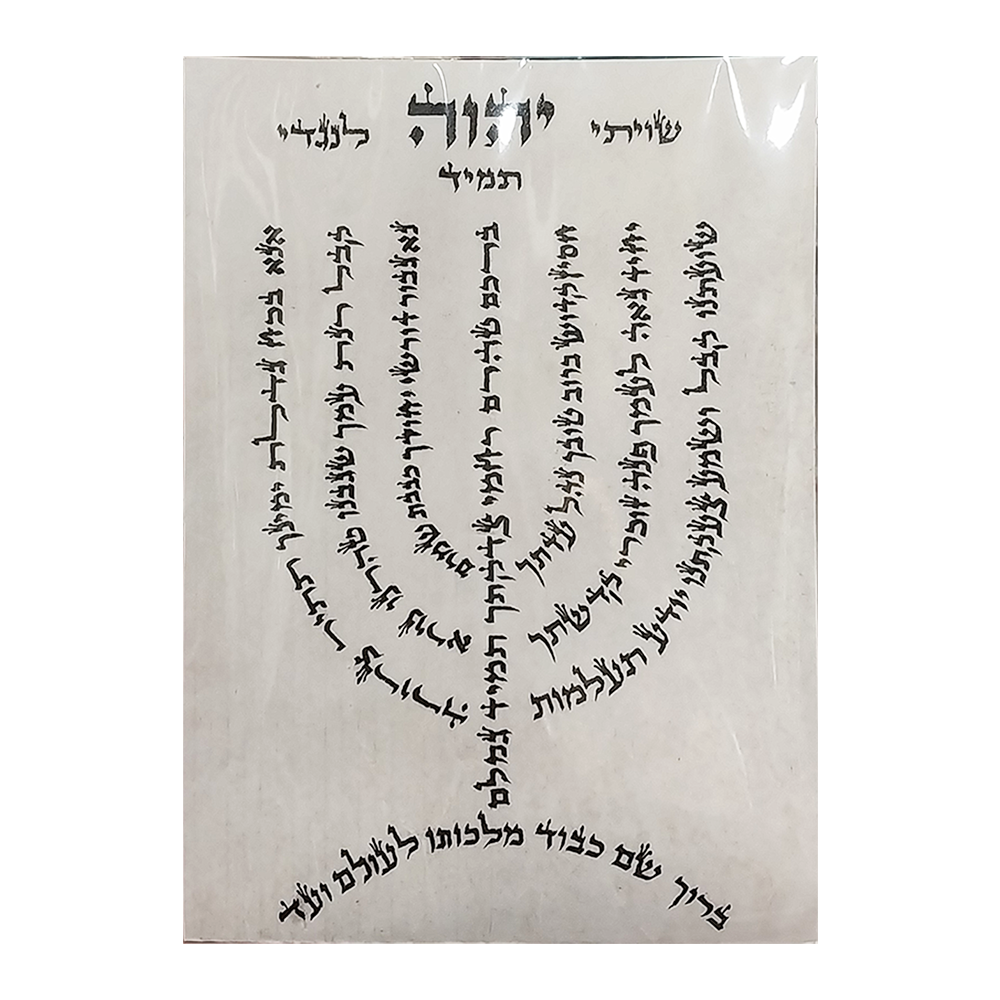 נכתב על קלף כשר ע"י סופר ירא"ש מומחה בשני גדלים הגדול בערך גודל 16ס' הקטן בערך 8ס' ניתן להכניס אף את הגדול לסידור קלאסי עם שם הוי"ה למעלה